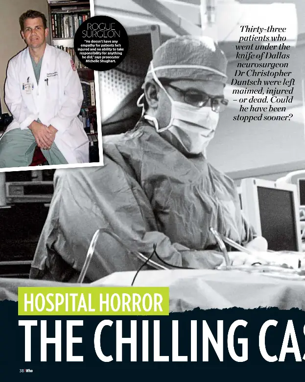 Through it all, one way duntsch was able to lure patient after patient under his knife was his extreme confidence. As patients entering the operating room of dr. The series stars the affair's joshua. Of those 38, 31 were left paralyzed or seriously injured and two of them died from surgical complications. Two of duntsch's surgical patients died.